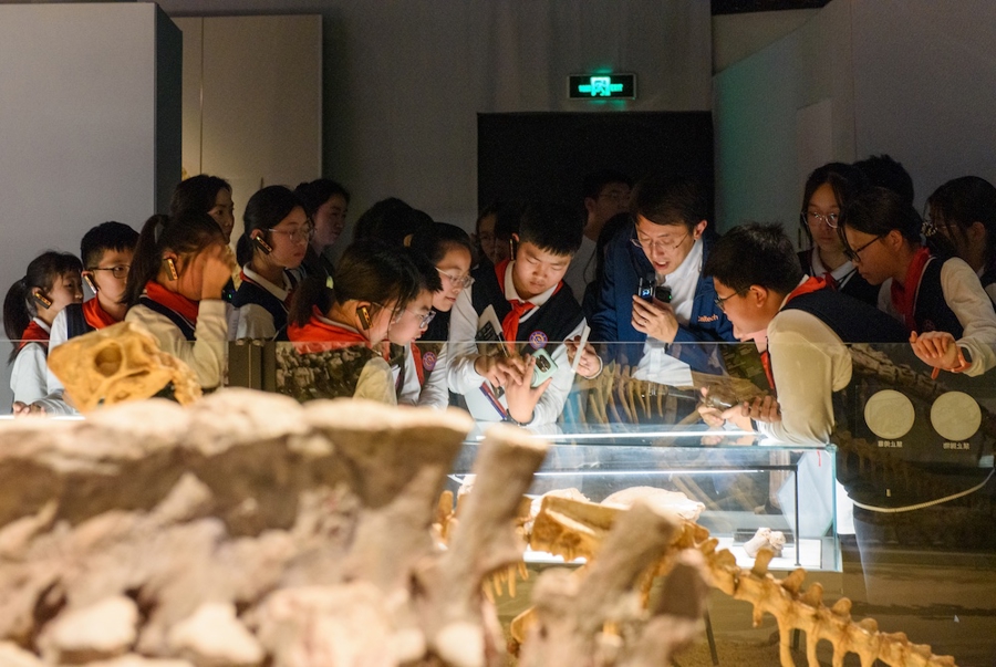 一块块沉睡亿万年的恐龙化石,不仅诉说着地球的往事,还成为一群中学生探究学习的“活教材”。日前,上海市娄山中学的同学们带着一连串问号,把课堂搬进了上海自然博物馆“中国恐龙大展”的展厅。“最近,教育部等七部门联合发布了《关于加强中小学科技教育的意见》,这次实践首度尝试以‘科学家+教师’联合授课的‘双师课堂’模式来探索学科融合,带着学生走进真实情境来解决问题。”