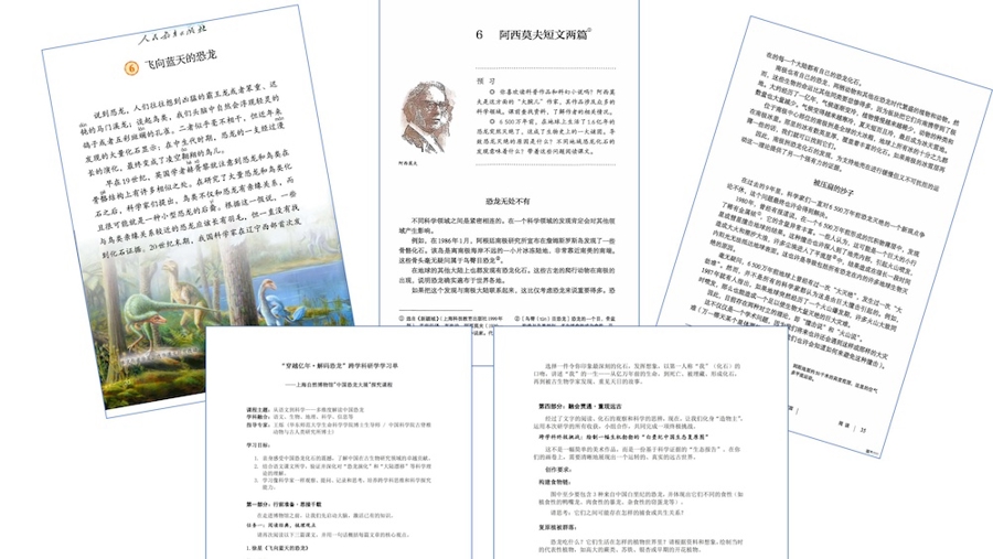 王荣说,本次研学活动以“从语文到科学——多维度解读中国恐龙”为主题,深度融合语文、生物、地理、科学、信息等多个学科。行前,学生们在语文老师的指导下,重读徐星院士的《飞向蓝天的恐龙》和阿西莫夫的《恐龙无处不有》、《被压扁的沙子》等经典篇目,梳理科学观点,并提出自己的“研究课题”。他们带着问题走进博物馆,手中的学习单化身为“古生物侦探”的探案指南。而这份学习单巧妙地将语文学科的阅读理解、生物学的物种特征、地理学的大陆漂移学说等知识点串联起来,引导学生带着“研究课题”走进博物馆。