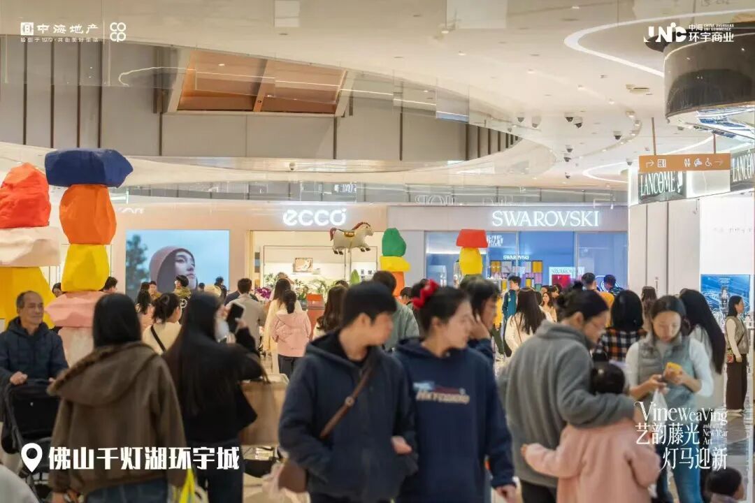 从顺联公园里“特卖+大促”双线发力打造高性价比场景,到佛山保利水城时光汇引入开心麻花互动戏剧和知名IP美陈,构建“戏剧化消费”新体验;从万科广场密集的新年音乐会、文艺汇演等文化惠民活动,到南海万达广场跨年狂欢、科技互动、公益健康等多元主题的穿插呈现……